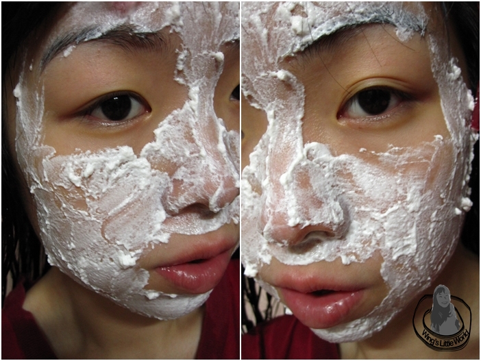 Wing把這個當作是面膜般使用~這個面潔面泥好像雪糕面膜呢,用的時候要小心丫,要不然就很容易會掉下弄髒周圍的地方的啦~